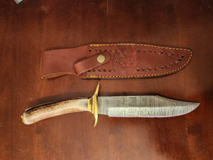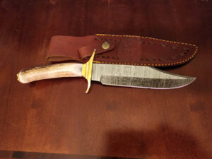 4th – Damascus Fighter Knife w/stag handle and sheath